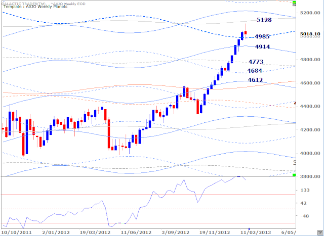 And there appears to be more room to run ... I'd thought that primary Saturn line at 4985 would provide stronger Resistance; it'll be interesting to see if it converts to Support during the next correction."